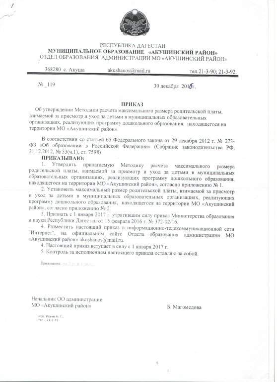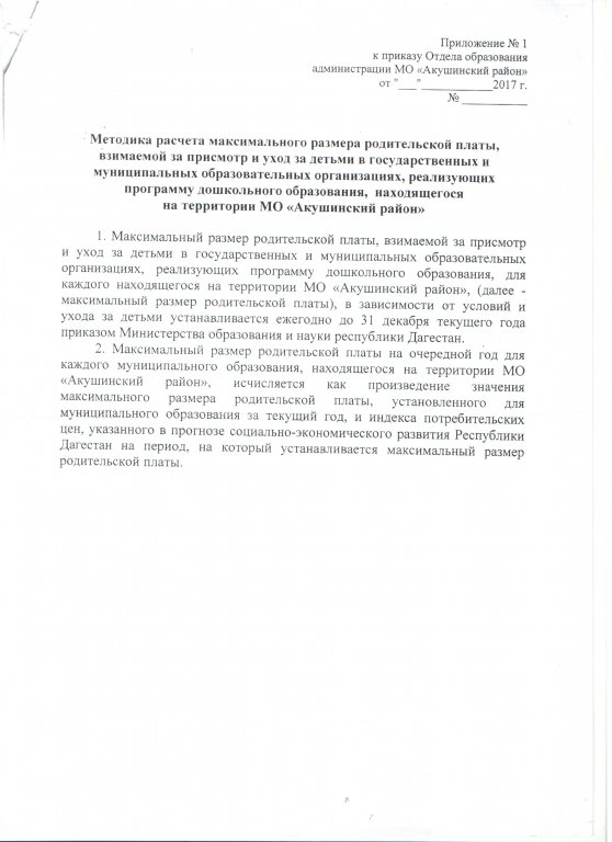 Документ об установлении размера платы, взимаемой с родителей (законных представителей)